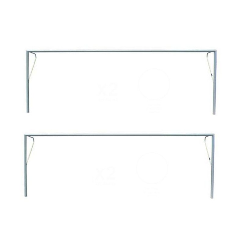 Contiene arquillos laterales de acero de sección 33 mm para la caída de la red y soportes de poliamida para la sujeción de la red a la portería.