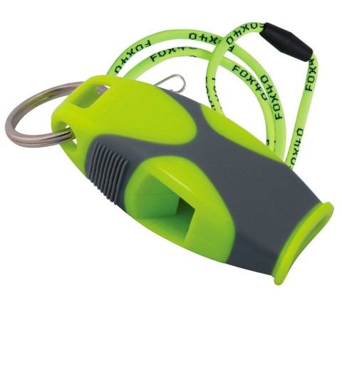 El primer silbato Fox 40 sin bola diseñado específicamente para el exterior. Sonido excepcional! Extremadamente fácil de pitar! Funciona en condiciones húmedas y secas! Color gris/neón. Incluye cordón.