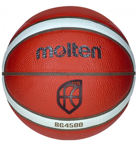 Balón de baloncesto Molten con construcción laminada con recubrimiento de cuero sintético con 12 paneles. Cámara interior butilo. Tamaño 7. Balón Oficial de la Federación Española de Baloncesto.