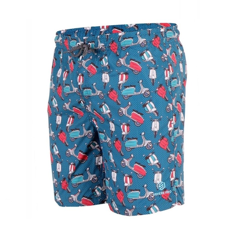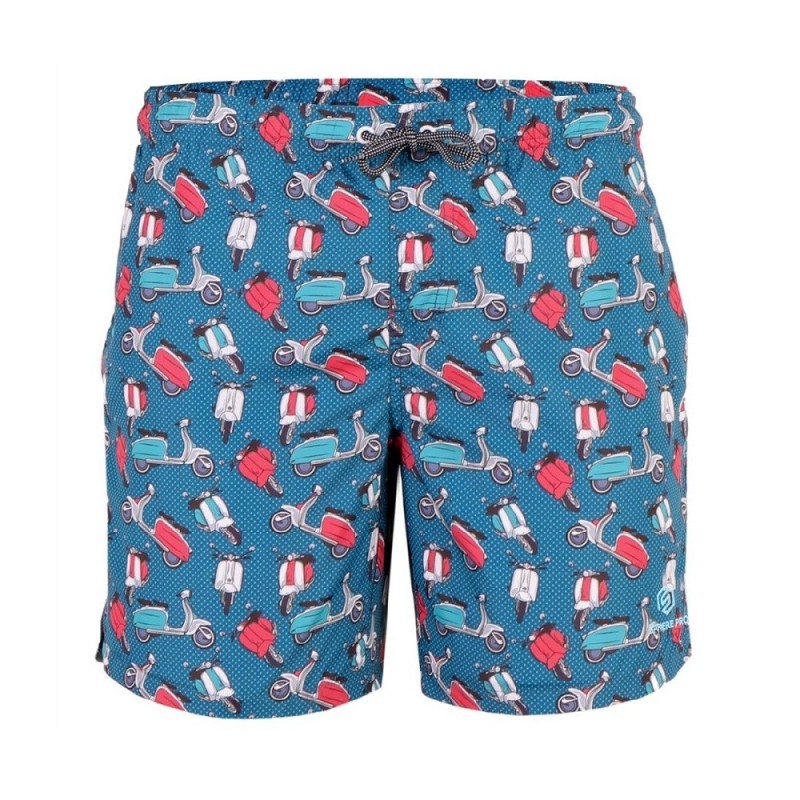 Sphere Pro nos trae este bañador en color azul con un estampado de Vespas, ideal para llevártelo a la playa o a la piscina.