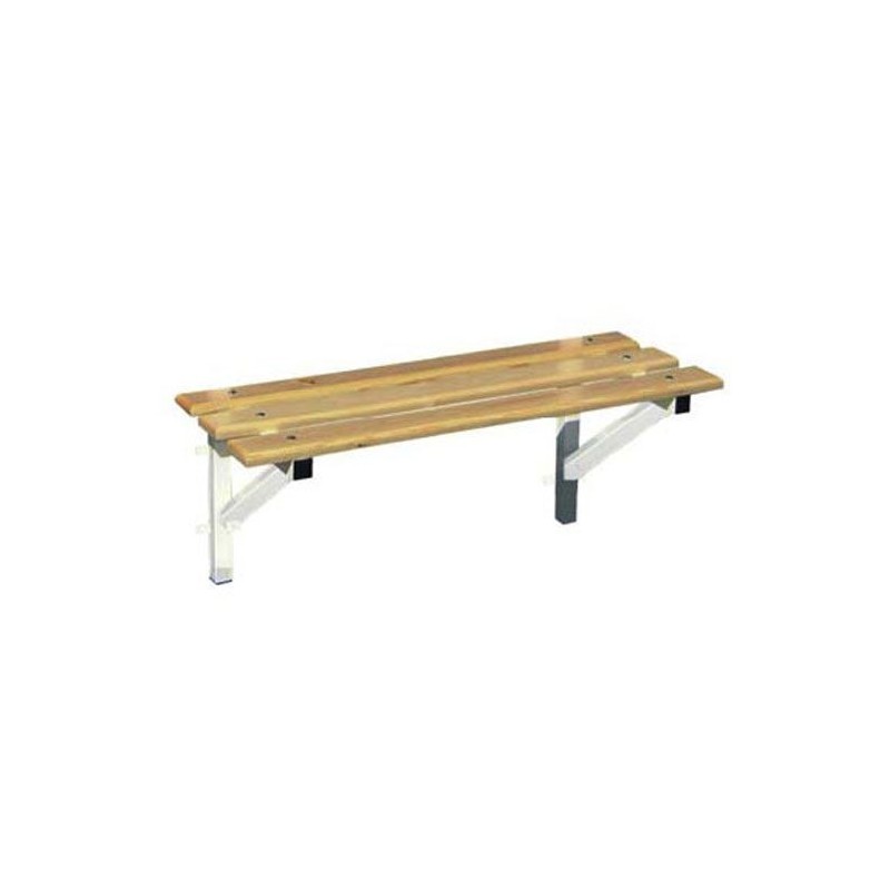 Banco de vestuario que al ir anclado a la pared ofrece gran resistencia, limita las acciones de vandalismo y facilita las acciones de limpieza. Diferentes medidas disponibles.