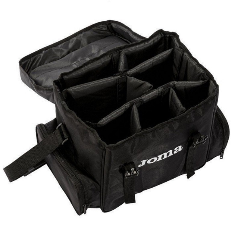 La bolsa de primeros auxilios de Joma está fabricada en nylon 600D de gran resistencia, con un gran compartimento interior. Tiene un tamaño compacto, con posibilidad de almacenar bastante material médico de manera organizada para atender a los jugadores en los partidos o entrenamientos. Con una gran apertura para un fácil acceso a su interior y cierre con cremallera.