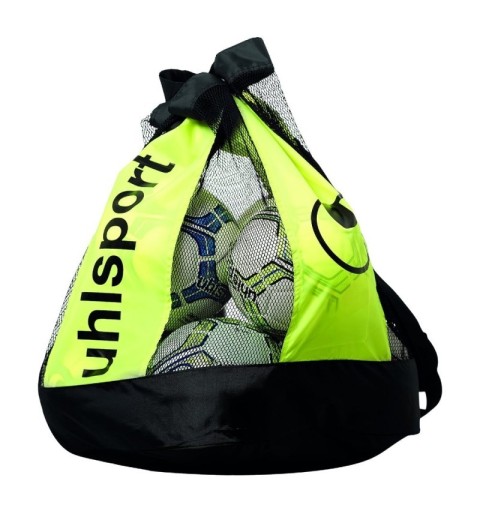 La Bolsa Portabalones Uhlsport destaca por su gran capacidad, pudiendo guardar hasta 16 balones. Su diseño incluye una rejilla de ventilación que favorece la circulación del aire, y para una mayor comodidad en el transporte, incorpora dos correas diseñadas para llevarla fácilmente al hombro. Color. Negro-Amarillo Flúor.