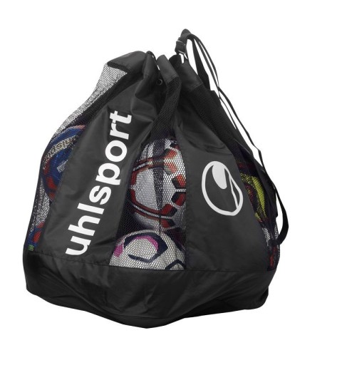 Esta bolsa para guardar balones Uhlsport tiene capacidad hasta para 12 balones. Rejilla de ventilación y dos correas para su transporte. Color negro.