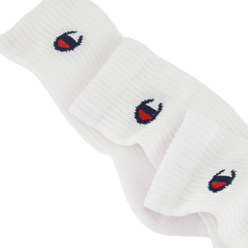 Pack de 3 calcetines deportivos Champion Crew en color blanco, diseñados para ofrecer comodidad, transpirabilidad y sujeción durante tus entrenamientos.