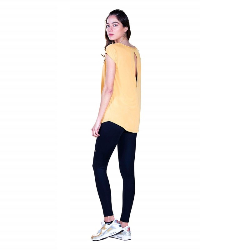 Domina tus actividades con estilo y comodidad con esta moderna camiseta en color mostaza.