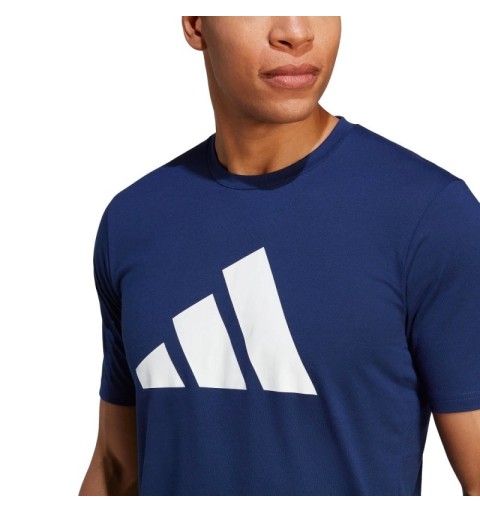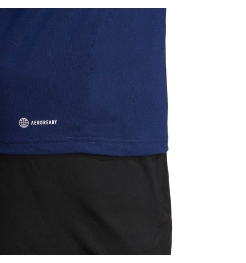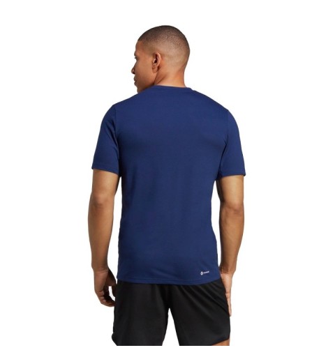 La camiseta Adidas Training Essentials en azul marino confeccionada con un 70% poliéster reciclado y un 30% algodón trae un cuello redondo acanalado y ha sido confeccionada con un corte regular para adaptarse a cualquier cuerpo. Esta diseñada con el logo de la marca en blanco estampado en el pecho y manga corta.