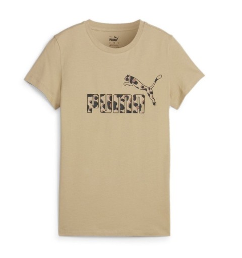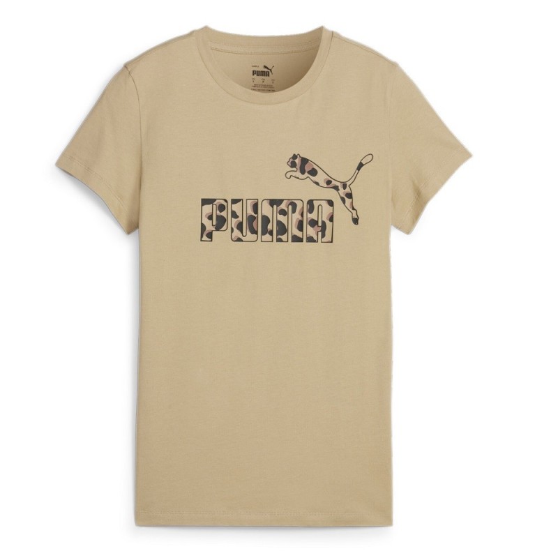 Descubre la elegante camiseta ESS+ Animal de Puma, en un discreto tono beige con estampado animal en el logo frontal.