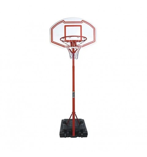 Canasta baloncesto de altura regulable (de 190 a 260 cm) y base de contrapeso para asegurar la estabilidad. Ruedas para transporte. Incluye tablero, aro, red, poste y base rellenable.