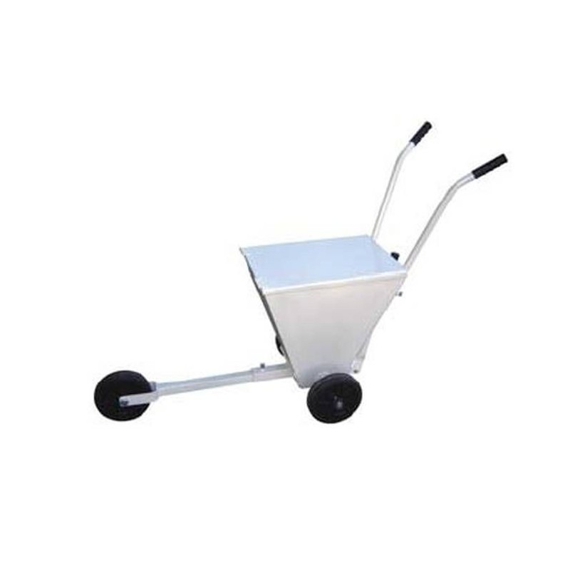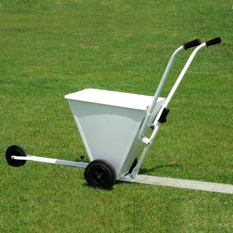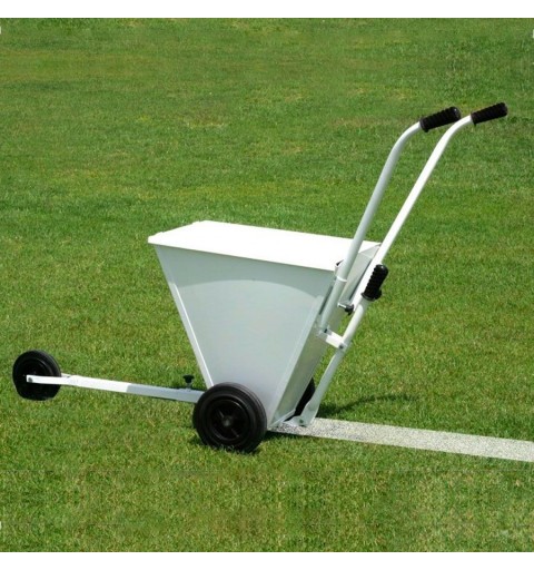Carretilla para marcar campos tipo básico. Equipado con dos ruedas laterales y una rueda delantera que sirve de guía para seguir la línea a señalizar. Equipa un sistema de salida regulable a 50mm y a 100 mm de ancho.