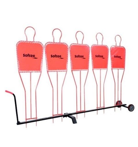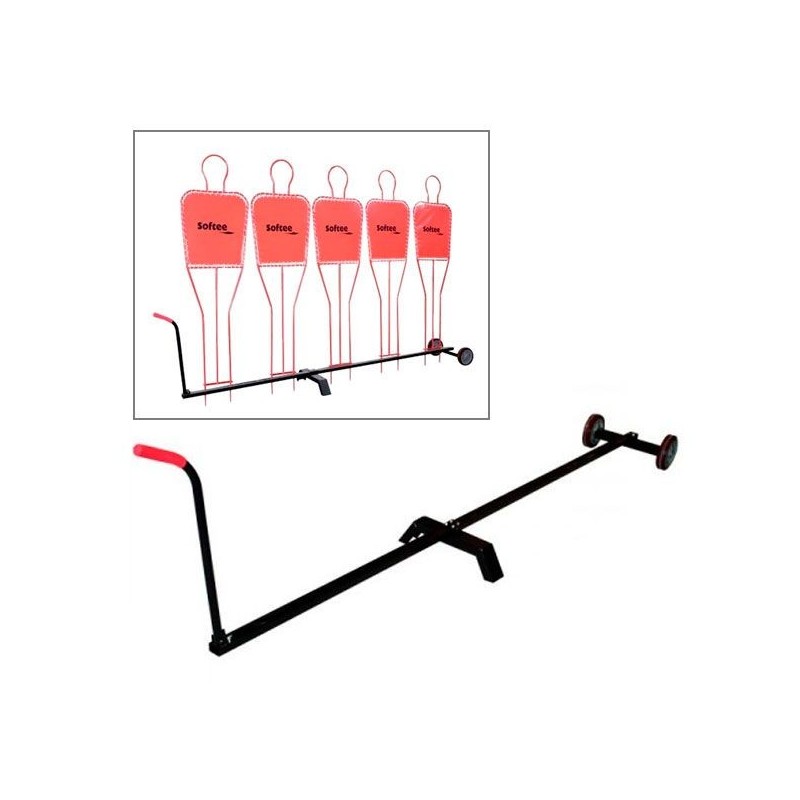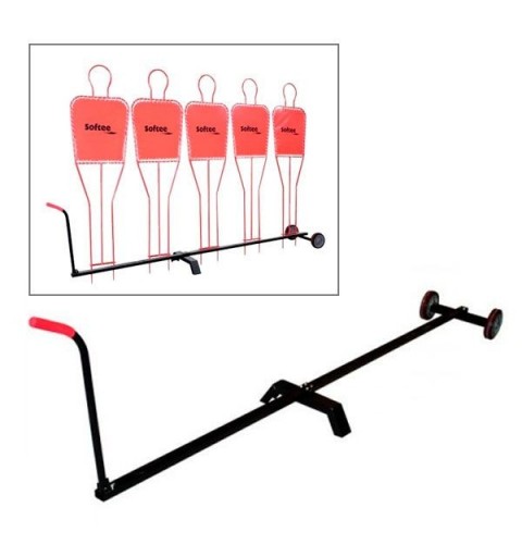 Equipado con asa y ruedas para desplazarlo fácilmente por el campo así como para llevarlo a la zona de almacenamiento. Su base está especialmente diseñada para evitiar el vuelco, Puede alojara hasta 5 siluetas de defensa.