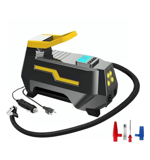 Compra este compresor eléctrico de Zastor y olvídate de medir la presión de tus balones. Con este inflador, llenarás rápidamente tus balones deportivos a la presión ideal. Incluye enchufes compatibles con fuentes de alimentación como DC12V para el coche y AC/DC para el hogar, además de múltiples salidas para inflar balones, neumáticos, inflables y más. Cumple con la normativa CE, ofreciendo la manera más rápida y conveniente de inflar cualquier objeto.