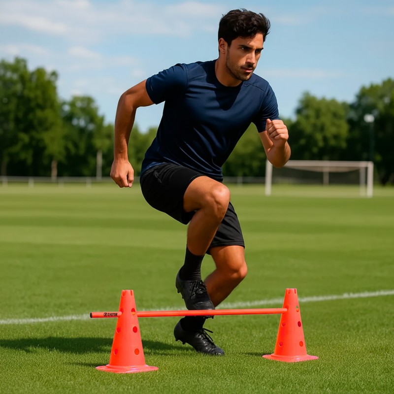 Crea diferentes rutinas de ejercicios con este cono de entrenamiento y trabaja diferentes aspectos como la agilidad, coordinación y velocidad de tus jugadores. Combina este cono con otros accesorios de entrenamiento como los aros de agilidad y otros elementos.