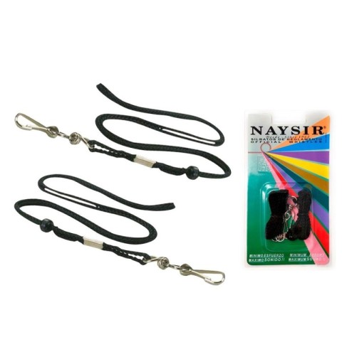 Blíster 2 unidades cordones de nylon de gran resistencia para la sujeción del silbato, evita la pérdida del mismo. Dispone de bola corredera que facilita el ajuste y la sujeción. Color negro.
