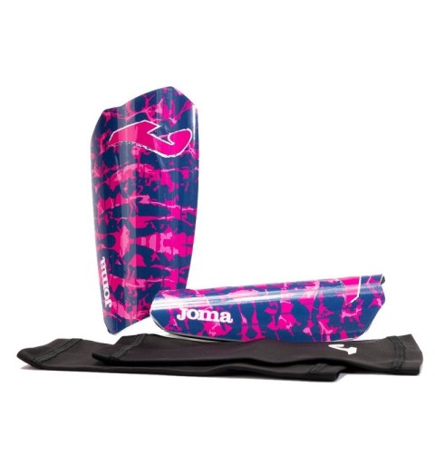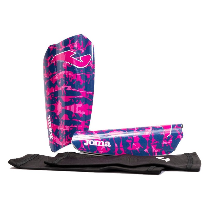 Elige las espinilleras Joma Spartan en azul marino y rosa, perfectas para protegerte durante tus partidos.