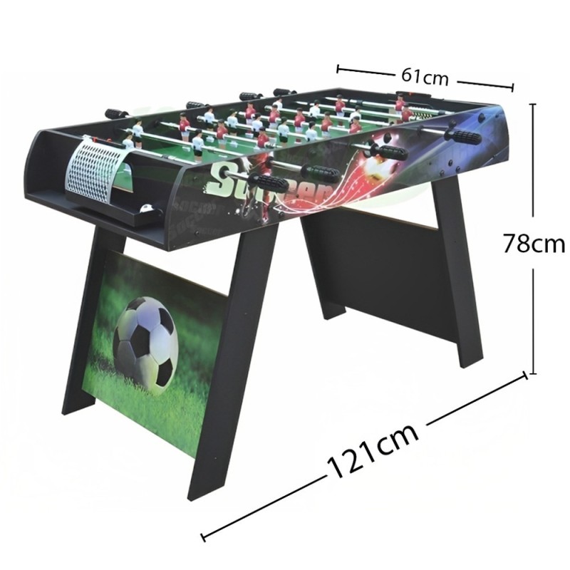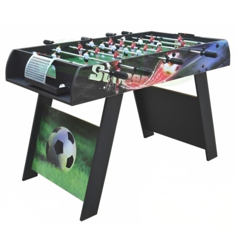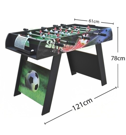 Con este futbolín, tus pequeños podrán divertirse durante horas mientras mejoran su coordinación y habilidades motoras. Con unas dimensiones de 121x61x78 cm, este futbolín es el regalo perfecto para fomentar la actividad física y la competitividad sana entre los más pequeños. Viene con barras telescópicas de seguridad para evitar golpes accidentales evitando que salgan por el otro lado, así como mangos de plástico para un mejor agarre y una gran comodidad. Incluye, además, 22 jugadores y dos bolas.