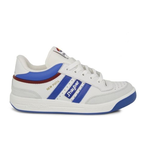 El J'hayber de toda la vida que por su comodidad es perfecto para uso diario y además ofrece un excelente comportamiento en las pistas de tenis. Todo un clásico más de moda que nunca. Color blanco-azul.
