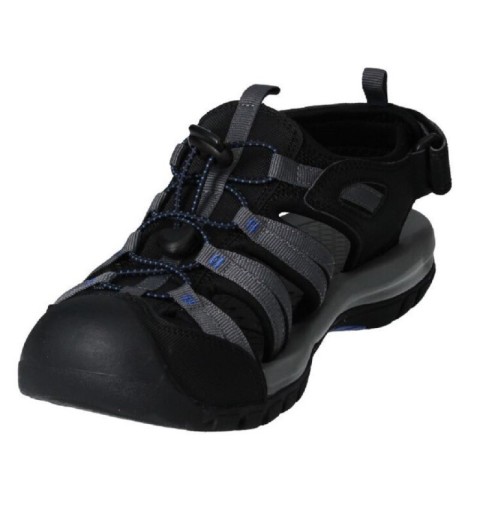 Las Oasona Black de J’Hayber son unas sandalias en color negro con forro de neopreno que mejorar la experiencia del usuario. La suela de goma aporta comodidad y amortiguación en cada pisada y tiene cierre a presión y gomas en el empeine, con cierre de velcro en el talón, haciendo que la sandalia se ajuste perfectamente al pie. Además, lleva un refuerzo en la puntera para evitar accidentes.