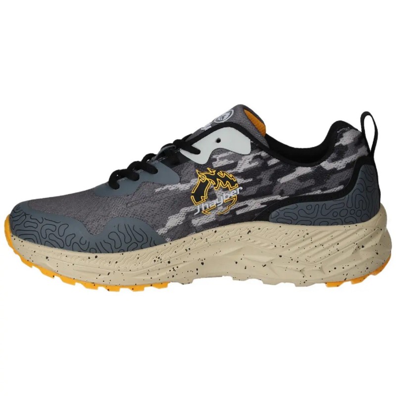 La zapatilla Ramos Grey de J’Hayber está diseñada para rendir en ambientes exigentes (trail running, senderismo o actividades al aire libre) sin olvidarse del aspecto estético. La suela con dibujo dentado proporciona agarre y control incluso cuando el terreno se vuelve resbaladizo o irregular. A su vez, el material de rejilla mejora la ventilación, lo que ayuda a mantener el pie cómodo y fresco durante más tiempo. El color gris plomo junto a detalles amarillos aporta una presencia moderna todavía versátil en contextos urbanos, haciendo de esta zapatilla una opción mezclable entre entrenamiento y estilo.