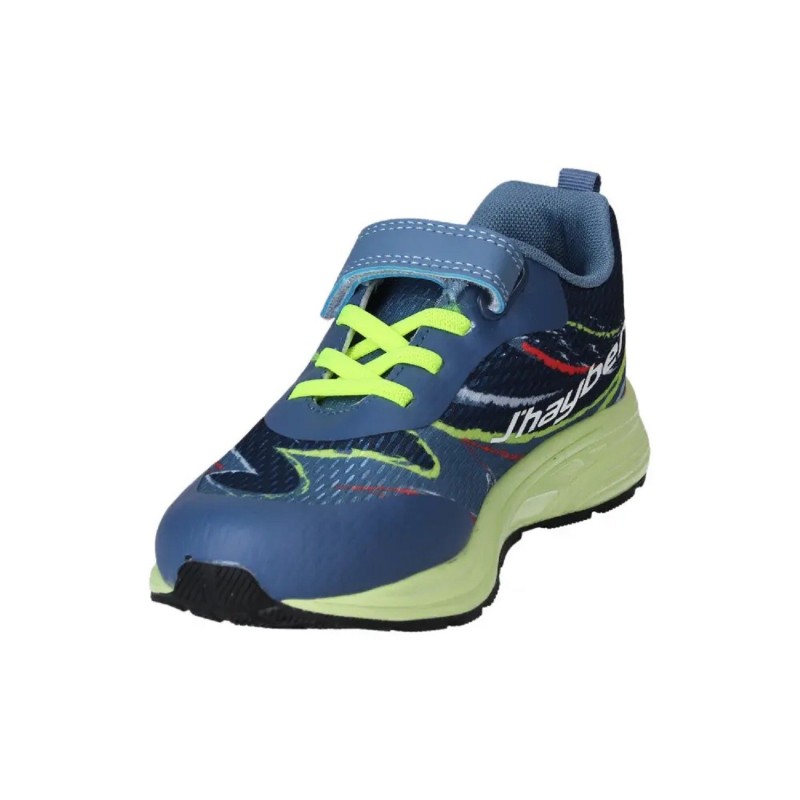 Este modelo de J’Hayber presenta una construcción pensada para el dinamismo infantil: cierre mixto de velcro y cordones elásticos para facilitar el calce, suela de goma antideslizante que mejora la seguridad y materiales ligeros que aseguran comodidad continua durante el día.