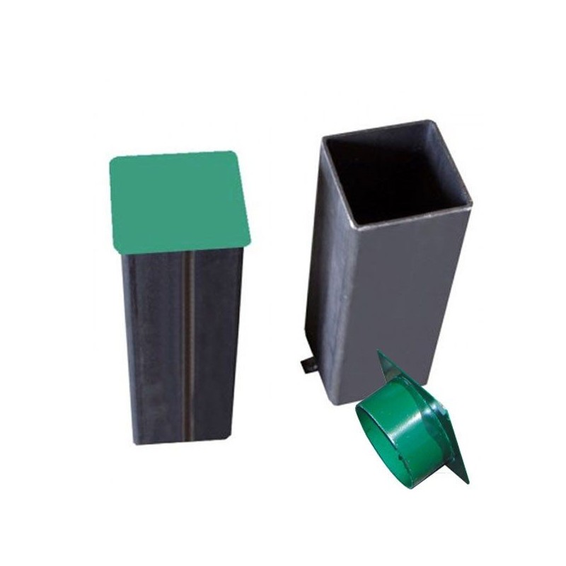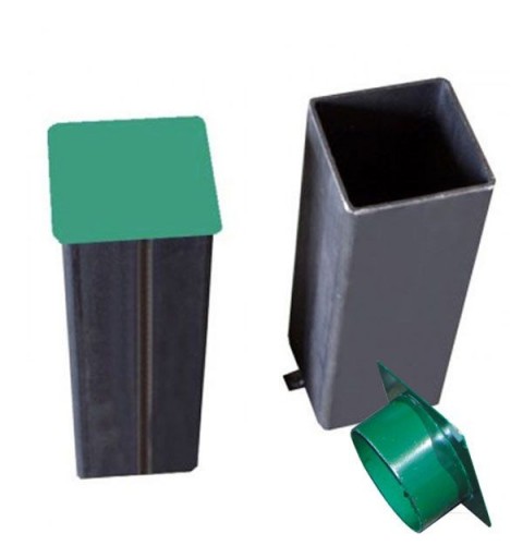 Juego de botes de acero con tapa para postes de 80x80mm de sección cuadrada para postes de pádel, tenis y voleibol. Diseñados para empotrar en zapata de hormigón.
