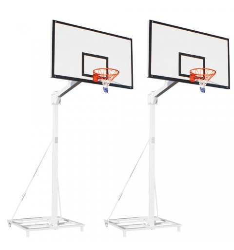 Juego completo de 2 canastas de baloncesto trasladables DeLuxe con ruedas y vuelo de 165 cm. Fabricadas cumpliendo la normativa UNE-EN 1270