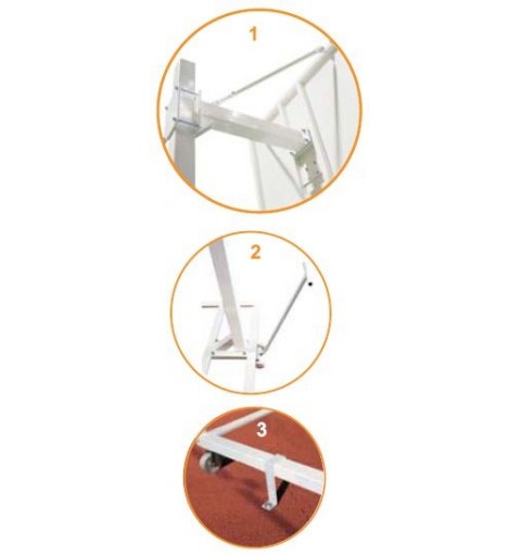 - Tirantes de estabilización al tablero (imagen 1) y a la base con ruedas.