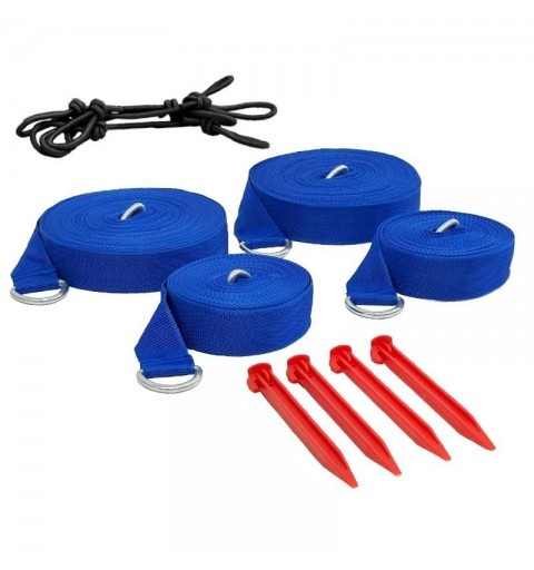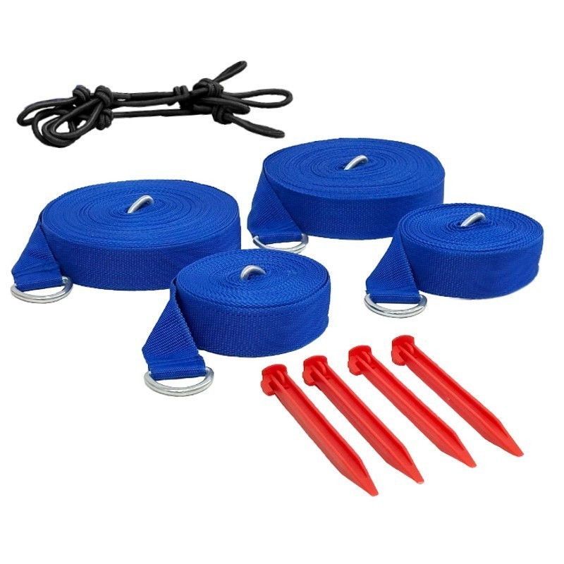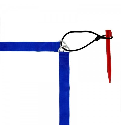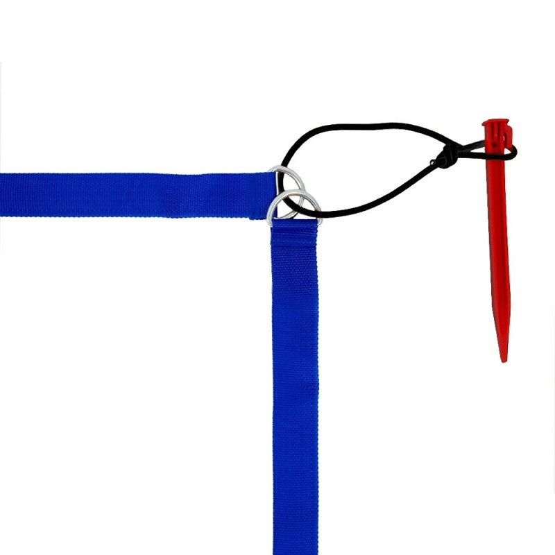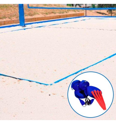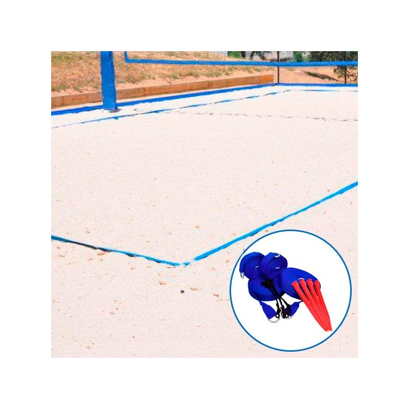 Set de 4 cintas para delimitar campos de vóley playa con sistema antilesión.Realizado con las medidas reglamentarias en polipropileno de color azul para mayor visibilidad. 2 cintas de 16 m y 2 cintas de 8 m.