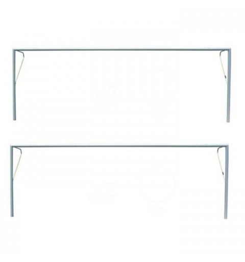 Contiene arquillos laterales de acero de sección 33 mm para la caída de la red y soportes de poliamida para la sujeción de la red a la portería.
