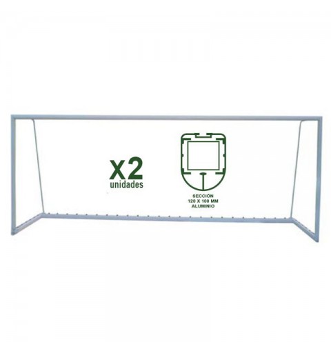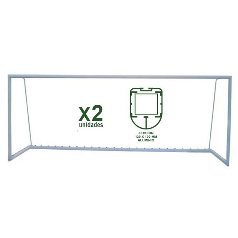 Juego de 2 porterías de fútbol 11 trasladables fabricadas en aluminio ovalado con sección de 120 x 100 mm.
