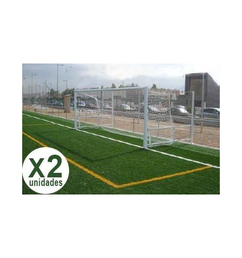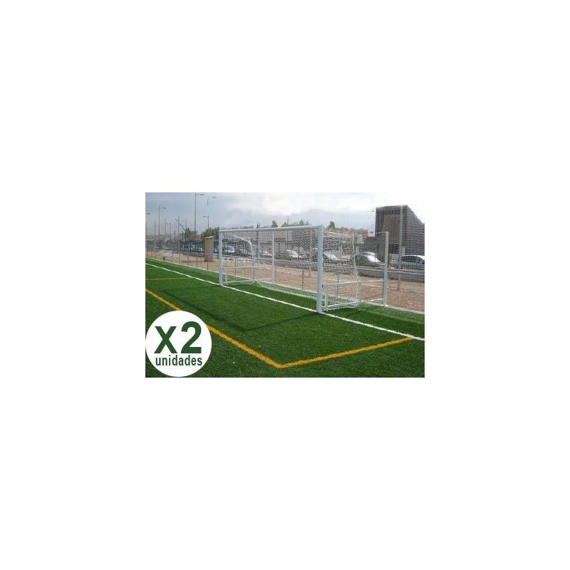 Juego de 2 porterías reglamentarias de fútbol 8 abatibles fabricadas en aluminio oval 120 x 100 mm.