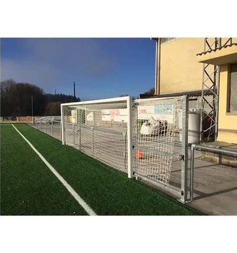 Juego de 2 porterías de fútbol 8 abatibles fabricadas en aluminio ovalado con sección de 120 x 100 mm.