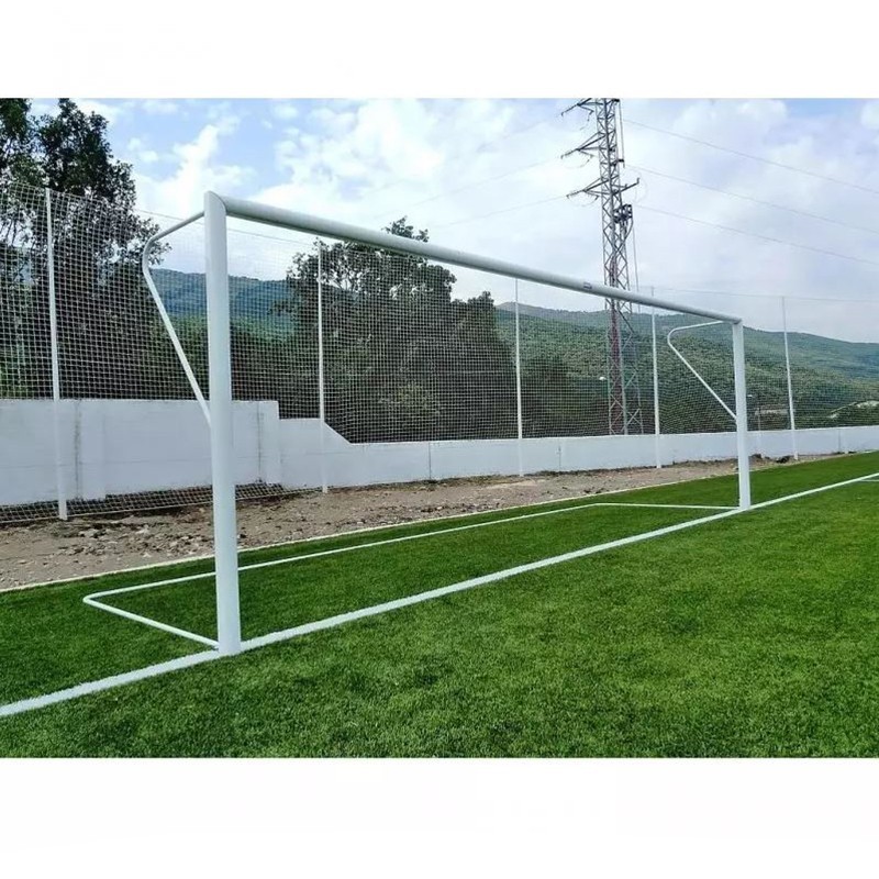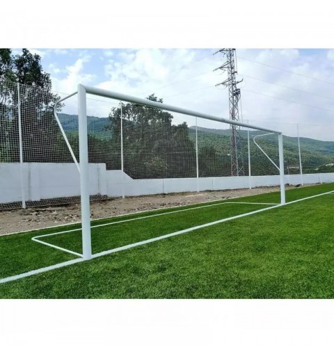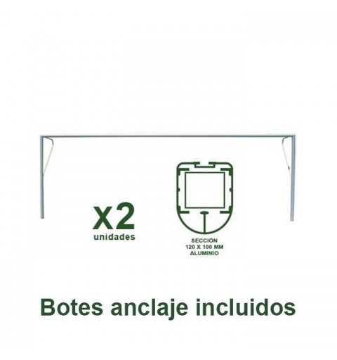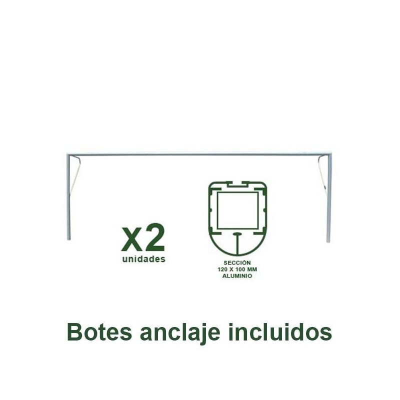 Juego de 2 porterías reglamentarias de fútbol 8 fijas fabricadas en aluminio oval 120 x 100 mm. Con botes de fijación incluidos.