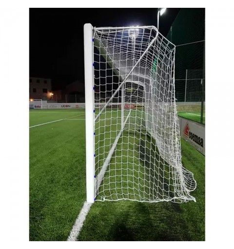 Contiene arquillos laterales de acero de sección 33 mm para la caída de la red y soportes de poliamida para la sujeción de la red a la portería.