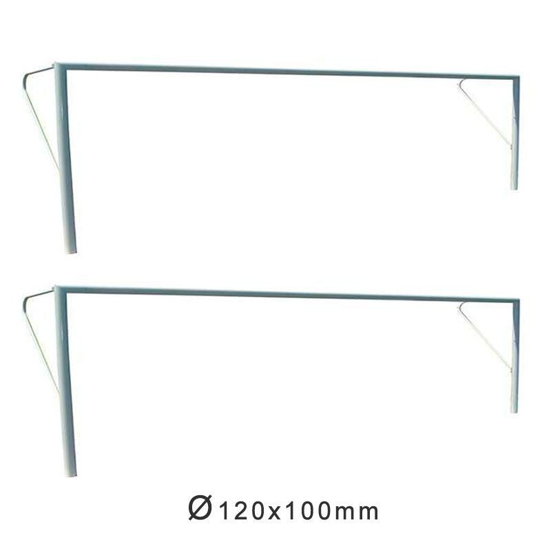 Juego de 2 porterías de fútbol playa fabricadas en aluminio de sección de Ø 120 x 100 mm.
