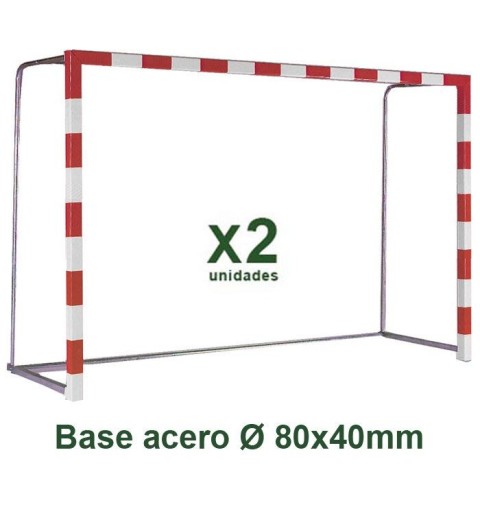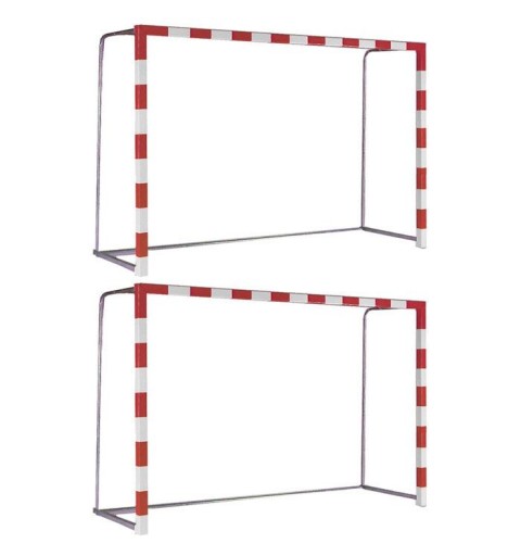 Juego de 2 porterías reglamentarias de fútbol sala / balonmano trasladables con marco de aluminio de 80 x 80 mm. y base de 80x40 mm.