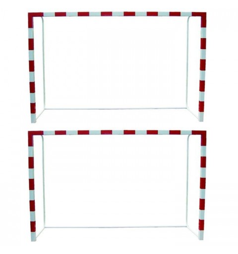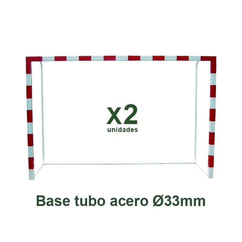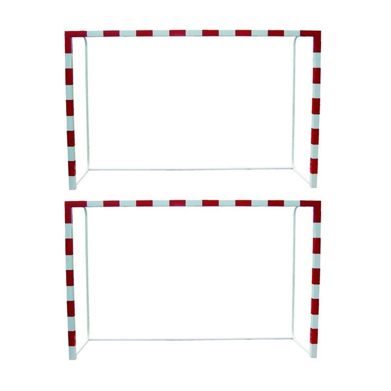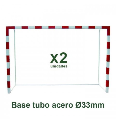 Juego de 2 porterías reglamentarias de fútbol sala / balonmano trasladables con marco de acero de 80 x 80 mm. y base de tubo redondo de 33 mm.