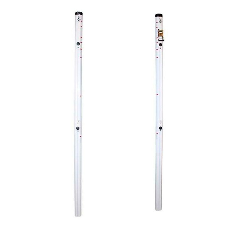 Juego de postes mutlideportes FIJOS fabricados en aluminio de sección redonda Ø90 mm. Regulables para distintos deportes. Diseñados para anclar al suelo. Botes de anclaje incluido.