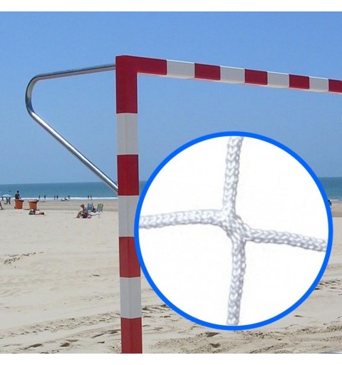 Estas redes de balonmano playa han sido confeccionadas con polipropileno blanco de alta densidad de 3mm sin nudo con malla de 100mm que garantiza un gran rendimiento y se ajusta perfectamente a las porterías de balonmano playa con medidas reglamentarias.