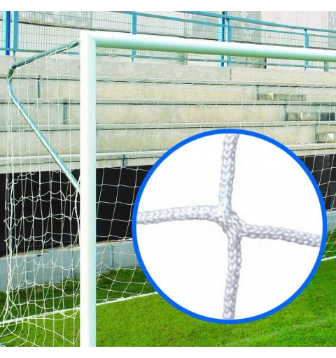 Juego de 2 redes para porterías de fútbol 11 elaboradas con polipropileno blanco de 3mm sin nudo acabado overlock y malla de 120mm según normativa EN 748