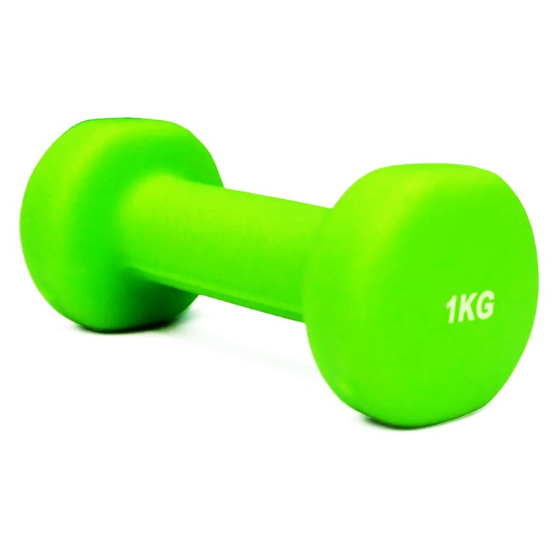 Entrena desde casa con esta mancuerna de hierro recubierta de neopreno de 1kg de Maximpro. Color verde. PRECIO POR UNIDAD.