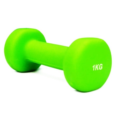 Descubre la comodidad con nuestra mancuerna de 1 kg en color verde, que presenta un tacto suave y un diseño redondeado sin aristas, además de un recubrimiento de neopreno que mejora el agarre. Esta elección es ideal para tus rutinas de resistencia muscular y tonificación en casa, gracias a su peso de 1000 gramos.