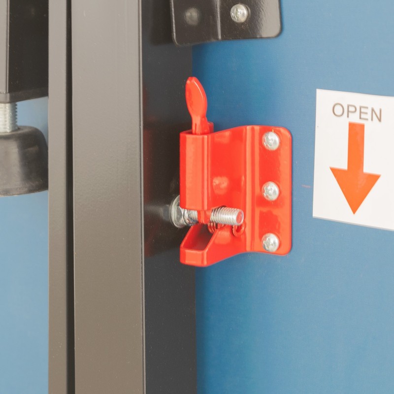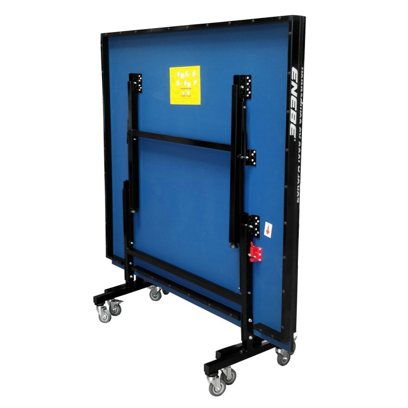 El sistema de plegado de la mesa de ping pong Enebe Europa 1000 permite colocar la mesa en tres posiciones: plegado para su almacenaje, frontón para un juego individual y juego tradicional para los partidos con otro/s jugadores.
