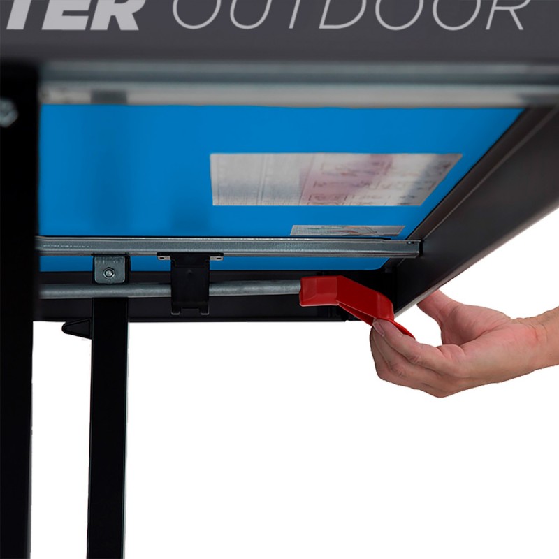 Su sistema de plegado compacto hace que sea fácil de guardar cuando no se está jugando y, además, permite colocar la mesa en tres posiciones de juego diferentes: tradicional, frontón y plegado total. Para mayor seguridad, cuenta con el sistema de fácil apertura SF1, que es muy cómodo ya que permite su apertura y cierre mediante un tirador que se encuentra debajo del tablero.