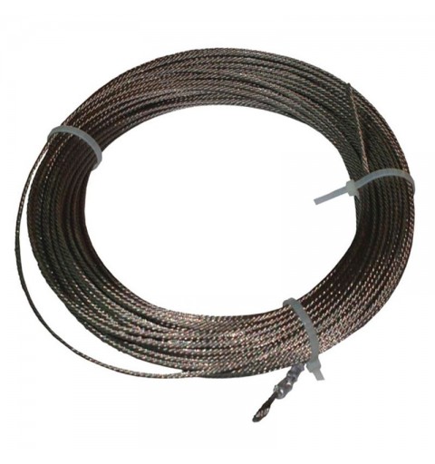Cable de acero galvanizado Ø 6 mm para montar redes perimetrales de protección en postes verticales. Suministrado en rollos de 25 m. Precio por metro lineal. Pedidos solo en múltiplos de 25 m.