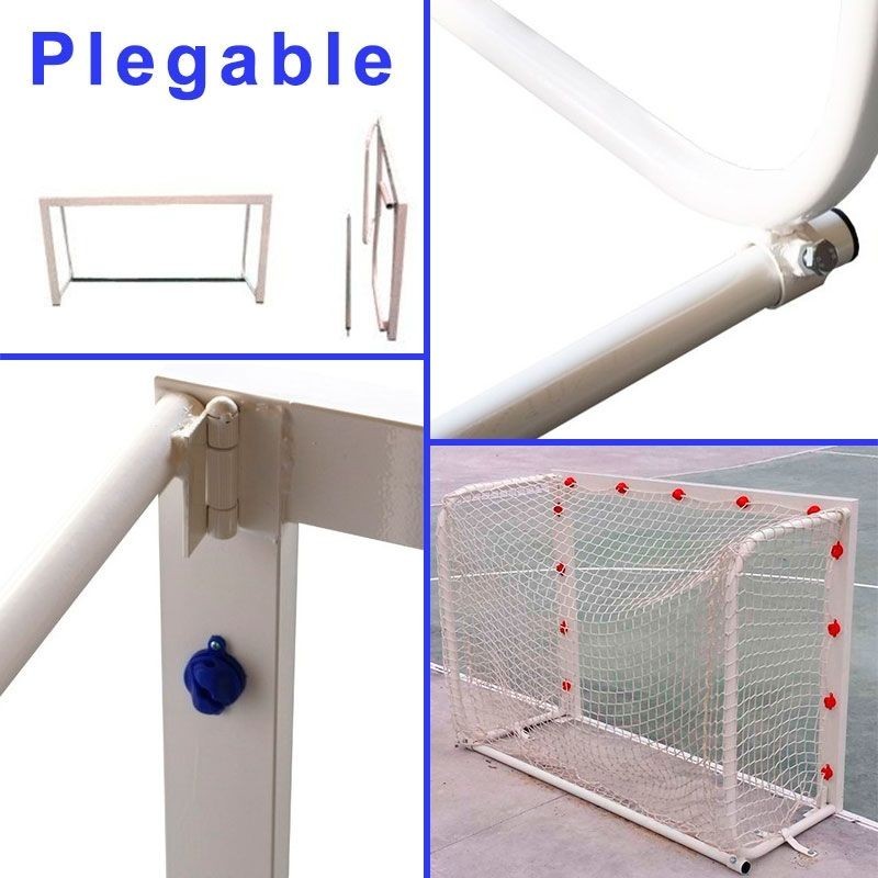 Esta mini portería plegable está preparada para poder realizar entrenamientos o jugar partidos de minifútbol. Fabricada con en acero blanco que le proporciona una gran resistencia. Tiene una medida de 140x105 cm y un sistema de plegado sencillo que permite preparar la portería para su uso en un instante.