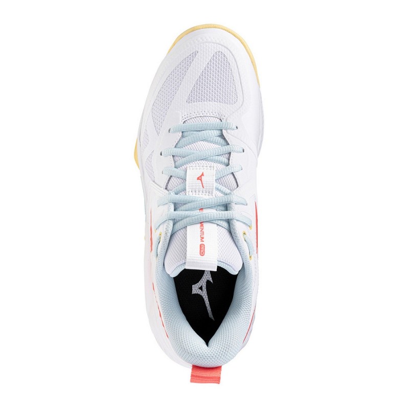 Combinando tecnología avanzada y diseño, las zapatillas de voleibol Mizuno Wave Momentum Pro WOS en blanco y coral son la opción perfecta para jugadoras que priorizan el rendimiento, la comodidad y un look moderno sobre la pista.