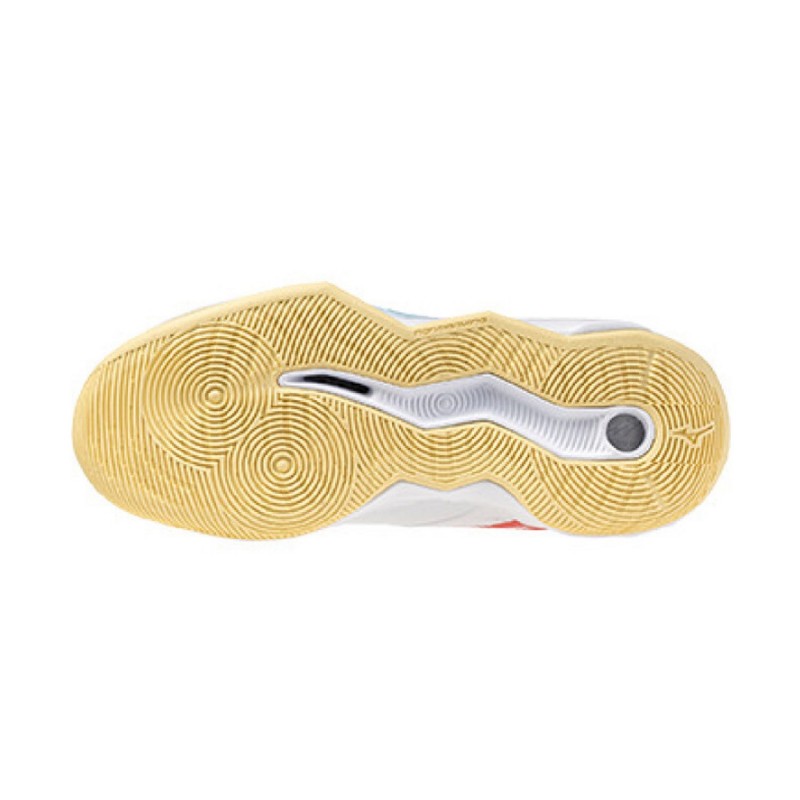 Las Mizuno Wave Momentum Pro WOS en blanco y coral son zapatillas de voleibol de alto rendimiento diseñadas para jugadoras exigentes que buscan lo mejor en innovación, confort y estabilidad en pista indoor.