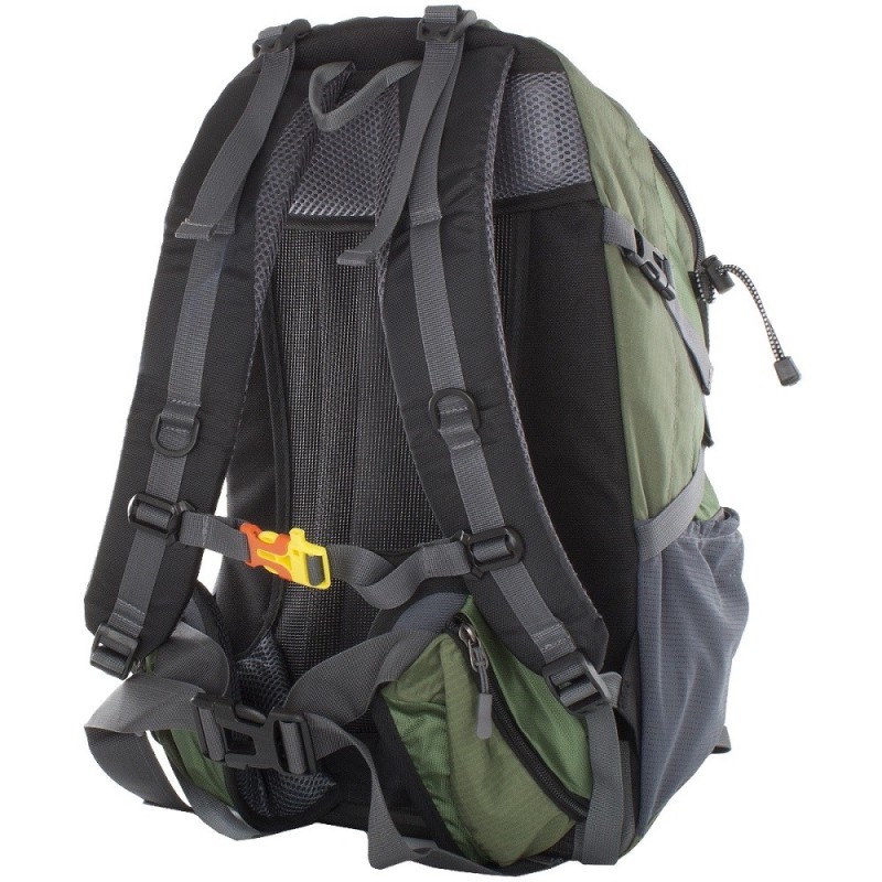 Viene en el exterior con dos bolsillos con cremallera en la cintura y dos bolsillos porta botellas de rejilla lateral; Un bolsillo de acceso rápido y otro con organizador. Trae un compartimiento especial para el ordenador y detalles reflectantes para una mejor visibilidad. Con cubre mochilas incluido y bolsillo especial para mejorar la impermeabilidad. Dos porta bastones de goma con tancas, dos aros porta objetos y asa de transporte.