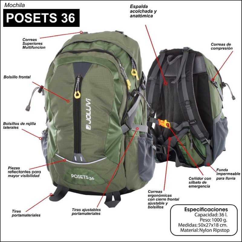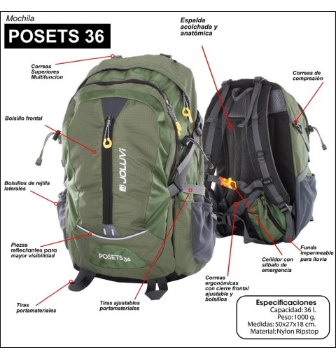 Características de Mochila Joluvi Posets 36 Verde Bosque